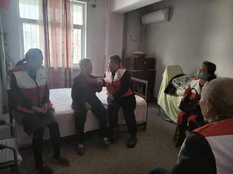已過百歲高齡的張桂梅,時刻牽動著誌願者的心。在重陽佳節到來之際,誌願者再一次來到張桂梅老人家中,一到達老人家裏,老人立刻拉著誌願者的手拉起家常,誌願者們(men) 則與(yu) 老人親(qin) 切交談,詢問老人的身體(ti) 、生活狀況,了解她的需求,老人深深體(ti) 會(hui) 到被人關(guan) 心被人照顧的濃濃真情,老人一生沒有生養(yang) 兒(er) 女,是紅十字誌願者讓老人享受到了天倫(lun) 之樂(le) 。在親(qin) 切的祝福、聲聲的問候中,老人滄桑的臉上綻開了幸福的笑容,感激之情溢於(yu) 言表。