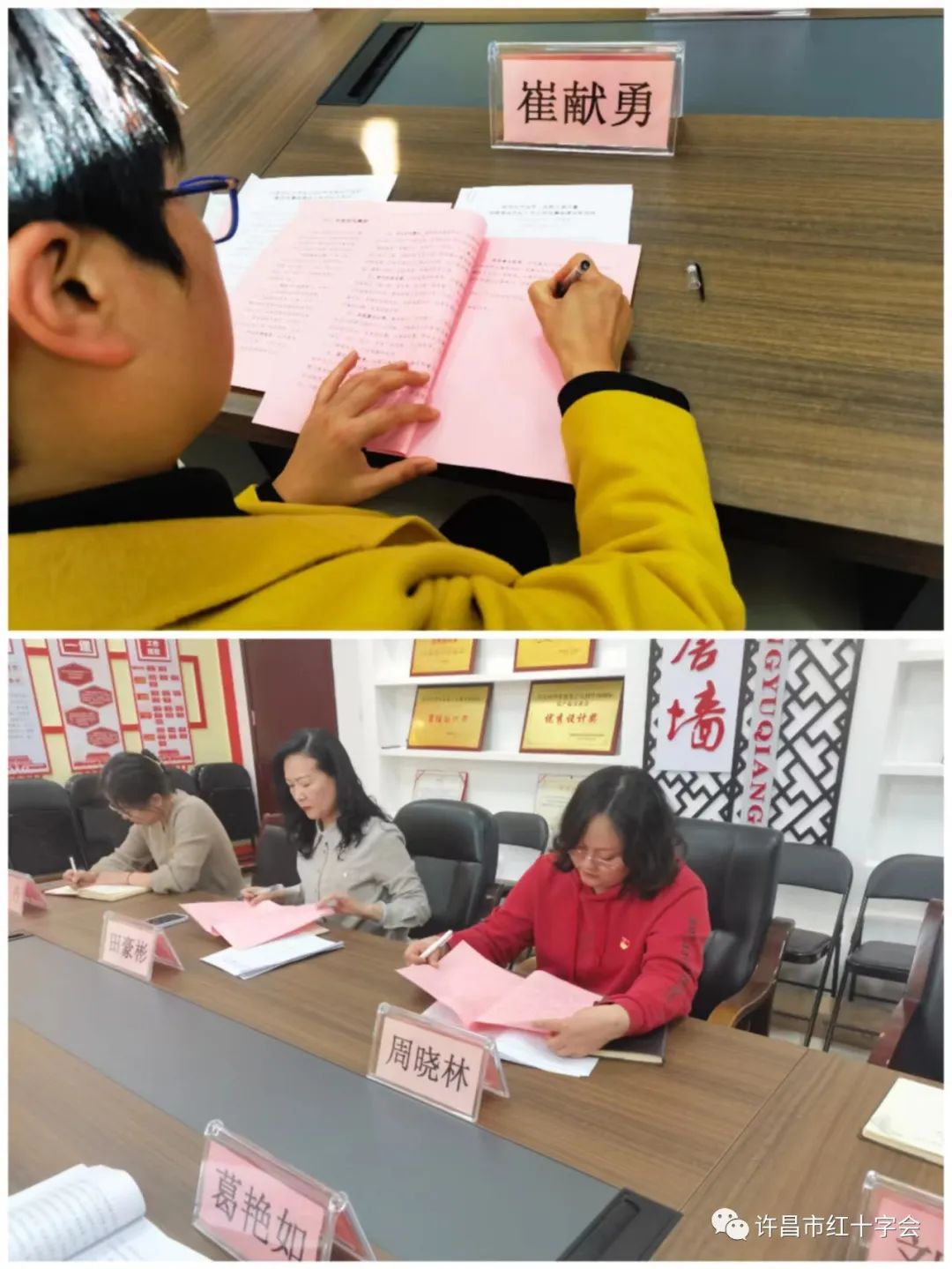 崔獻勇同誌與(yu) 辦公室和賑濟救護部負責人簽訂了《2023年度黨(dang) 風廉政建設目標責任書(shu) 》