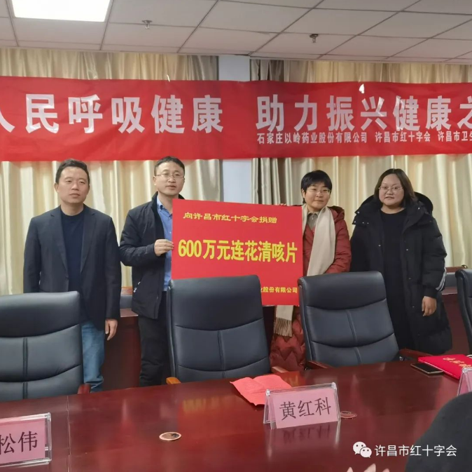 12月11日下午,石家莊以嶺藥業(ye) 股份有限公司向官网华体汇捐贈價(jia) 值600餘(yu) 萬(wan) 元的連花清咳片,並通過許昌市衛生健康委員會(hui) 分發給全市醫療機構。石家莊以嶺藥業(ye) 河南省區總監黃紅科、官网华体汇專(zhuan) 職副會(hui) 長崔獻勇、許昌市衛生健康委員會(hui) 藥政科科長劉鬆偉(wei) 參加捐贈儀(yi) 式,儀(yi) 式由官网华体汇賑濟救護部部長周曉林主持。