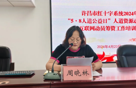 周曉林宣讀河南省紅十字會(hui) 《河南省紅十字係統2023年“5.8人道公益日”人道資源動員工作的表揚通報》、《關(guan) 於(yu) 表彰2023年“5·8人道公益日”互聯網籌資工作先進的決(jue) 定》。她指出:希望受表彰的單位和個(ge) 人,珍惜榮譽,再接再厲,再創佳績,積極適應互聯網發展趨勢,進一步開展好互聯網籌資工作,一如既往的關(guan) 注和支持紅十字工作,推動我市紅十字事業(ye) 的發展。