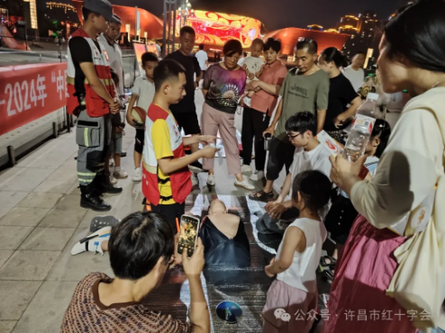 活動現場,許昌市紅十字漢風救援隊誌願者的“急救地攤”也吸引了許多市民駐足學習,通過現場講解心肺複蘇術、海姆立克急救法等急救知識,指導群眾親自練習,傳播了應急救護知識,提高了群眾自救互救本領