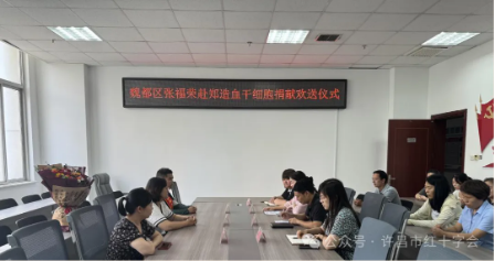 6月20日上午,許昌市魏都區紅十字會(hui) 舉(ju) 行張福榮同誌赴鄭州捐獻造血幹細胞歡送會(hui) 。官网华体汇賑災救護部部長周曉林,魏都區政府辦公室副主任焦思源,魏都區衛健委副主任張華、王露,魏都區紅十字會(hui) 副會(hui) 長趙岩參加歡送會(hui) 。