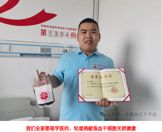 父親(qin) 是一名醫生,可能是受家庭的影響,99年出生的劉慧哲從(cong) 小的夢想就是立誌成為(wei) 一名像父親(qin) 一樣的醫生,能夠救死扶傷(shang) 、挽救生命,她懷揣著崇高的夢想考入了商丘醫學高等專(zhuan) 科學校。2023年,她通過河南省基層人才工程醫學院校畢業(ye) 生特招計劃,成為(wei) 了禹州市淺井鎮中心衛生院的一名口腔科醫師。在參加工作前,她積極參與(yu) 無償(chang) 獻血等社會(hui) 公益活動,2020年,在一次無償(chang) 獻血過程中,劉慧哲主動留下血樣加入中國造血幹細胞捐獻者資料庫,自此成為(wei) 造血幹細胞捐獻誌願者。2024年5月,她接到官网华体汇工作人員電話,得知自己與(yu) 一名14歲白血病患者配型成功時,她毫不猶豫地選擇捐獻自己的造血幹細胞,挽救與(yu) 自己素不相識的患者。她說:“因為(wei) 學醫,也知道這種幾率很低,所以覺得當時的決(jue) 定太正確了”。
