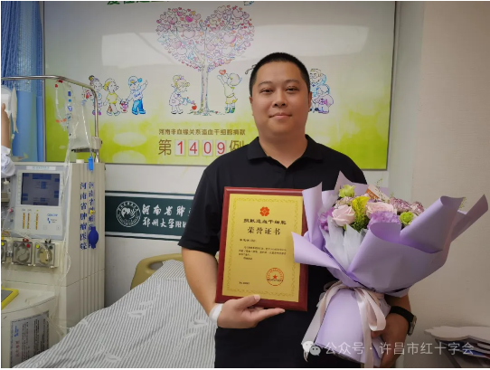 因為(wei) 患者病情比較緊急,從(cong) 6月3日初篩到7月22日捐獻,僅(jin) 僅(jin) 用了50天。張誌淵成為(wei) 河南省第1409例、許昌市第61例造血幹細胞捐獻。