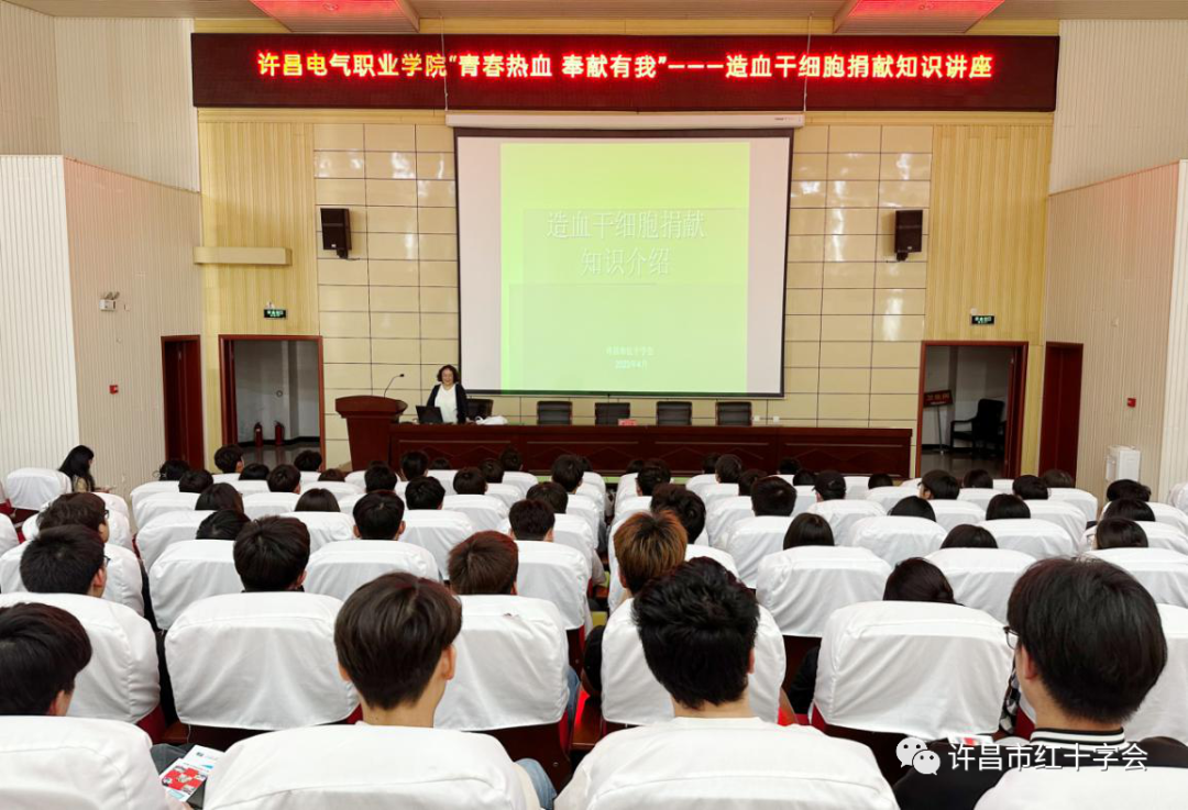 4月27日下午,在許昌電氣學院開展造血幹細胞捐獻知識培訓講座。