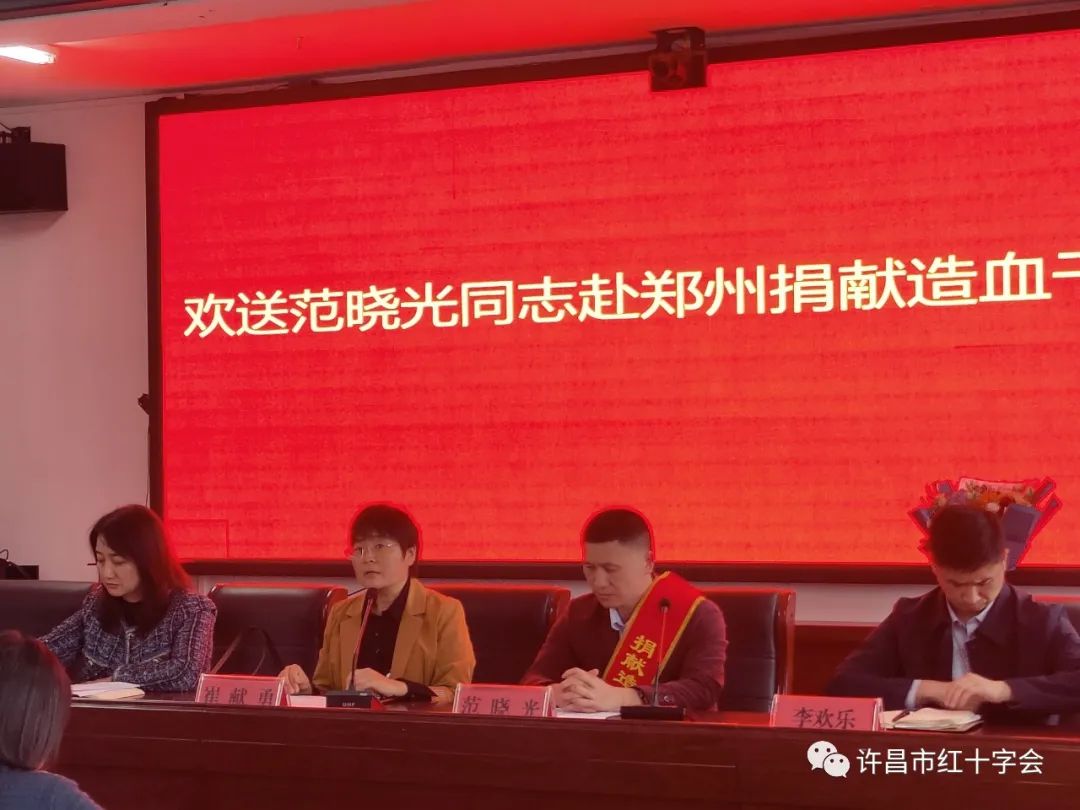 10月19日下午,許昌市襄城縣舉(ju) 行範曉光同誌捐獻造血幹細胞歡送儀(yi) 式,官网华体汇副會(hui) 長崔獻勇,襄城縣衛健委黨(dang) 組書(shu) 記、主任、襄城縣紅十字會(hui) 常務副會(hui) 長姚巍蔚,襄城縣潁回鎮黨(dang) 委書(shu) 記李歡樂(le) 、襄城縣紅十字會(hui) 專(zhuan) 職副會(hui) 長陳宏偉(wei) ,襄城縣紅十字會(hui) 副會(hui) 長朱亞(ya) 璽,穎回鎮衛生院院長馮(feng) 亞(ya) 偉(wei) ,襄城縣紅會(hui) 工作人員和潁回鎮衛生院職工共計30餘(yu) 人參加歡送會(hui) ,會(hui) 議由陳宏偉(wei) 主持。