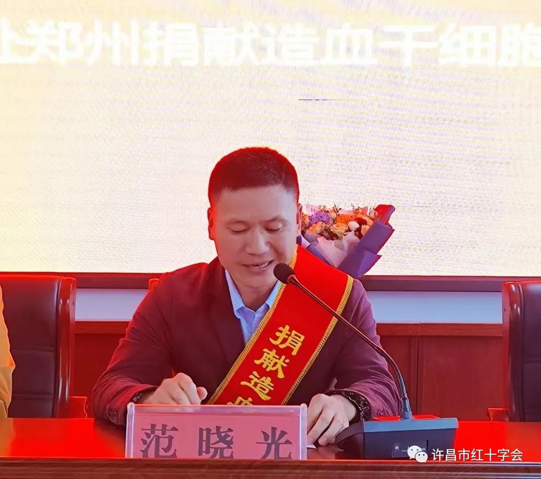 崔獻勇表示:範曉光是我市10月份第二位捐獻造血幹細胞誌願者,同時也是我市第16例來自衛健係統捐獻者,他的愛心之舉(ju) 充分體(ti) 現了“人道、博愛、奉獻”的紅十字精神,充分體(ti) 現了一名熱心公益者無私奉獻、關(guan) 愛他人的高尚品德,充分體(ti) 現了中華民族“一方有難,八方支援,樂(le) 善好施”的傳(chuan) 統美德。我們(men) 希望社會(hui) 各界向範曉光同誌學習(xi) ,發揚助人為(wei) 樂(le) 的人道主義(yi) 精神,積極參與(yu) 到捐獻造血幹細胞隊伍中來,用自己的實際行動,獻出您博大的愛心,挽救他人的生命,用崇高的人道善舉(ju) 去點亮每一位患者的生命之光。