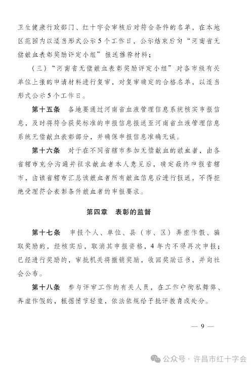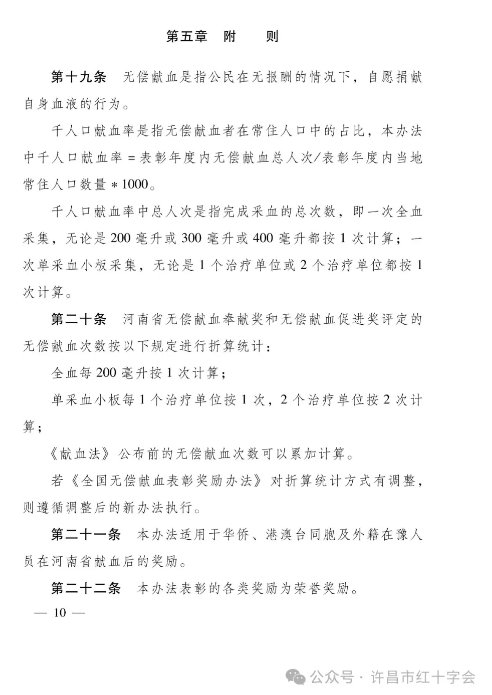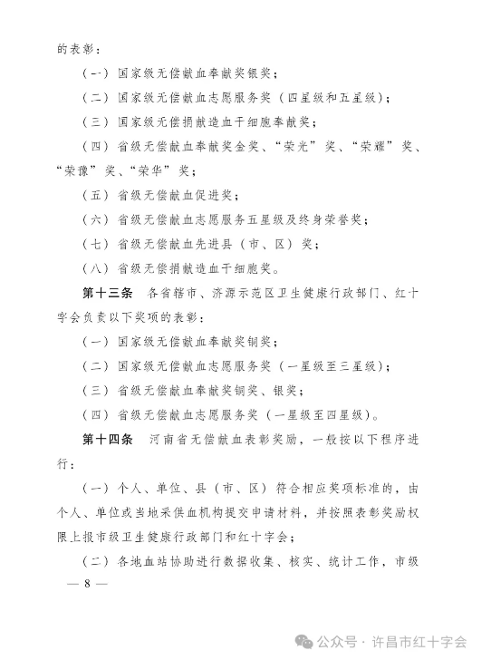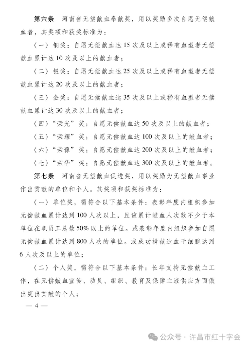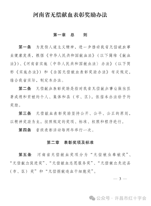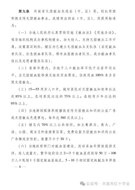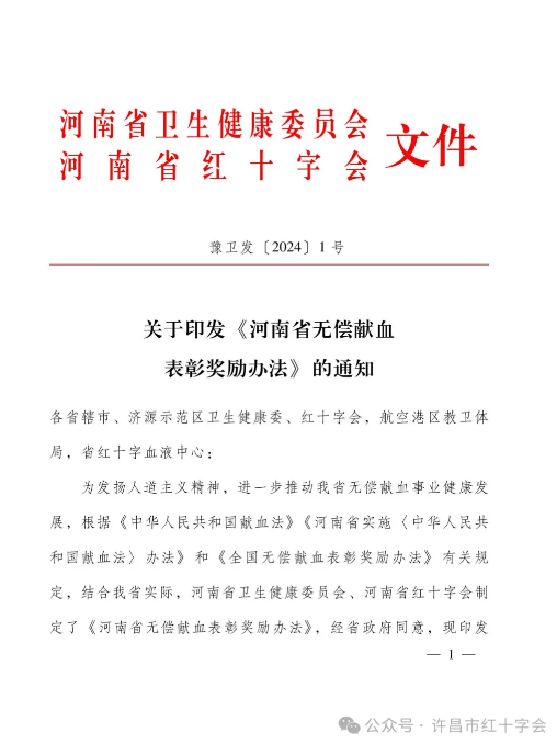 《河南省無償(chang) 獻血表彰獎勵辦法》印發