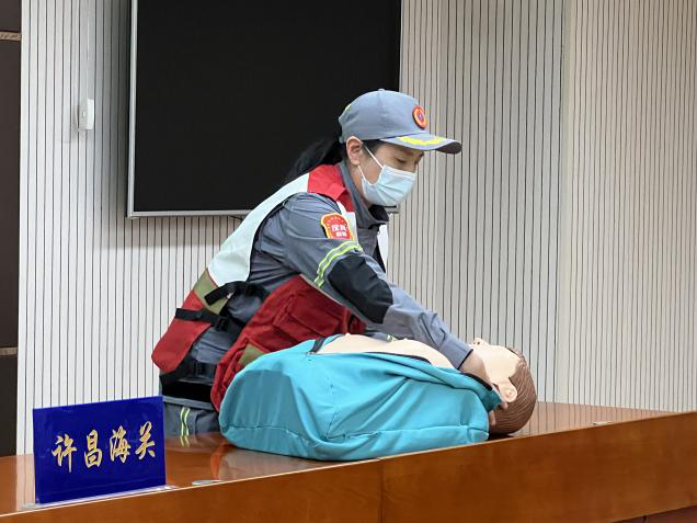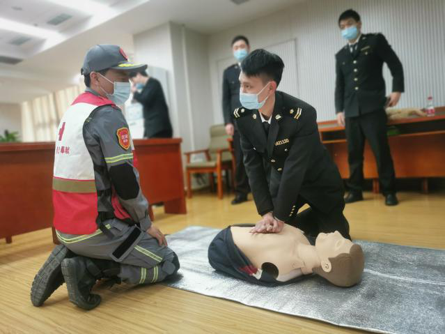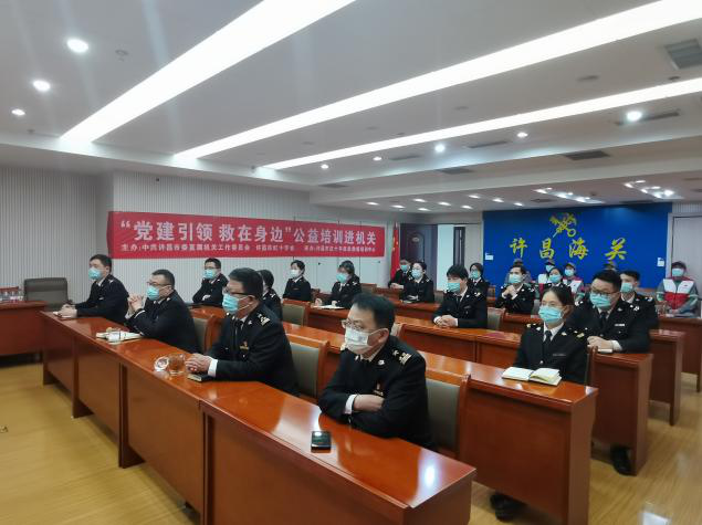 4月6日下午,許昌海關(guan) 組織部分黨(dang) 員開展了“黨(dang) 建引領 救在身邊”公益培訓進機關(guan) 活動。許昌市紅十字應急救援培訓中心講師為(wei) 大家講解了紅十字運動知識 、心肺複蘇(CPR)、自動體(ti) 外除顫器(AED)的使用、氣道異物梗阻等知識,並和誌願者一起帶領大家進行了實操,培訓現場氛圍濃厚,參與(yu) 積極性高,參加培訓人員對培訓滿意度評價(jia) 很高。