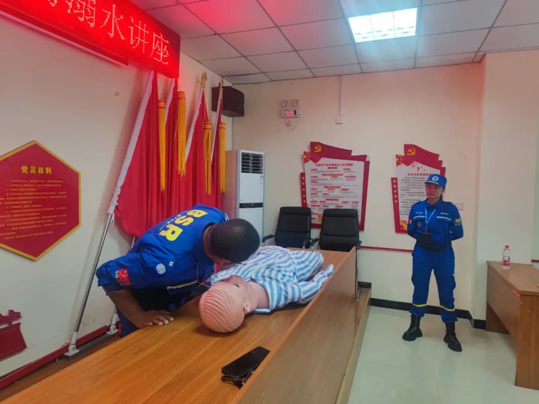 副隊長李華磊擔任此次授課講師,隊員李易真、誌願者張萌擔任助教。講課分為(wei) 兩(liang) 部分,第一部分為(wei) 防溺水知識,圍繞“六不兩(liang) 會(hui) 四告知”,通過四個(ge) 方麵,以理論結合實踐的授課方式,讓社區的孩子及家長更深入了解了①如何預防溺水;②如果遇到有人溺水怎麽(me) 辦?③自己不小心掉入水中如何配合岸上救援人員施救及如何自救;④如何正確穿戴救生衣。孩子們(men) 積極參與(yu) 互動,從(cong) 實踐中更加深刻地認識互救自救技能。