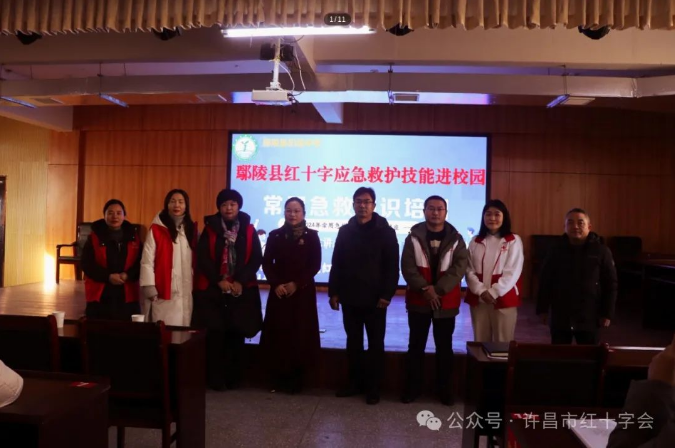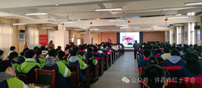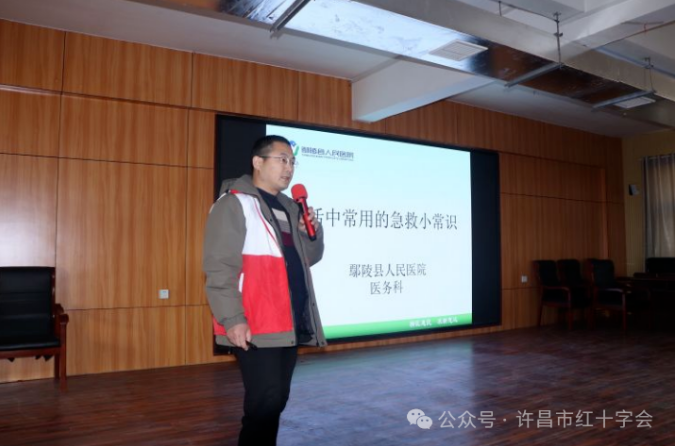 鄢陵縣人民醫院紅十字應急救護誌願服務隊利用課件並結合臨(lin) 床實例,聲情並茂地講解生活中常見的急診急救知識。