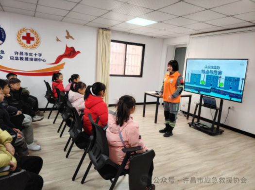 2025年2月9日上午,市應急救援協會(hui) 在隊部為(wei) 古槐街小學一年級學生開展了一場生動有趣的“壹基金兒(er) 童平安小課堂”地震安全知識培訓。