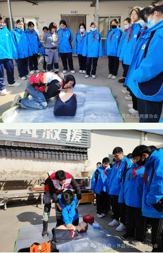 市應急救援協會(hui) 的誌願者們(men) 通過理論講解與(yu) 實操演練相結合的方式,為(wei) 學生們(men) 詳細介紹了心肺複蘇(CPR)、自動體(ti) 外除顫器(AED)的使用以及海姆立克急救法等實用的急救知識。